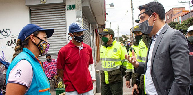 Anderson Acosta Torres, alcalde local (E) realizó un ejercicio de pedagogía con los vendedores, les hizo un llamado a respetar la cuarentena preventiva obligatoria decretada por el gobierno nacional y las medidas anunciadas por la Alcaldía Mayor de Bogotá. Asimismo, les explicó cuáles serán las ayudas humanitarias que recibirán para que permanezcan en sus casas.