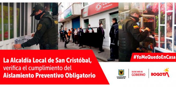 Bogotá, 22 de abril de 2020. La Alcaldía Local de San Cristóbal realizó actividades de Inspección, Vigilancia y Control (IVC), a los establecimientos de comercio en diferentes sectores de la localidad, con el fin de verificar que se esté cumpliendo con lo establecido en los Decretos expedidos por el Gobierno Nacional y Distrital por la emergencia social que vive el mundo a raíz del Covid-19.