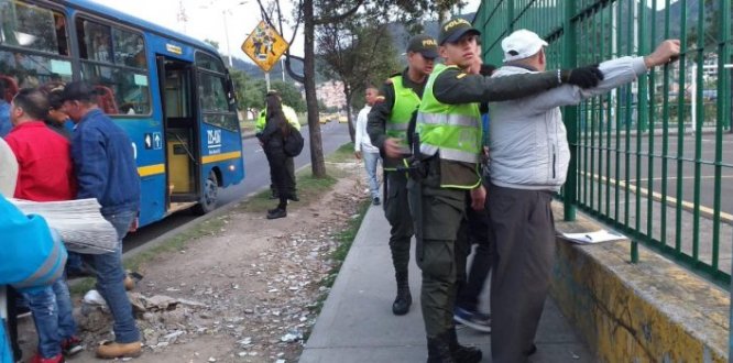 Trabajamos por la comunidad usuaria de SITP, brindándole seguridad y confianza; se lleva a cabo, en el paradero ubicado en la Av. 1.° de Mayo con 7ma, encontrando individuos portando sustancias alucinógenas más no consumiendo dentro de este medio masivo de transporte, las cuales quedan a disposición de la Policía Nacional y desalojados del medio de transporte.