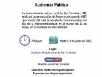 Audiencia pública acuerdo #117 Conmemoración Día de la Afrocolombianidad