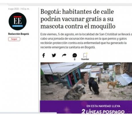 Bogotá: habitantes de calle podrán vacunar gratis a su mascota contra el moquillo