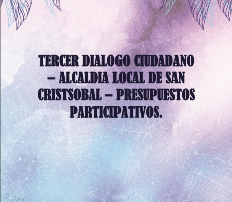 El cuarto dialogo ciudadano está enfocado en presentar los resultados de la aplicación de la Herramienta deEvaluación al Gobierno Local realizado por el Observatorio Ciudadano de Veeduría de la Localidad de SanCristóbal, y abrir un espacio de diálogo e interlocución entre las entidades evaluadas y la ciudadanía. Estediálogo también pretende visibilizar la labor realizada por el Observatorio Local en su ejercicio de realizarcontrol social preventivo a la gestión pública local.