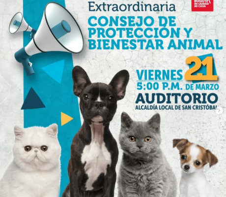 Prográmate este viernes 21 de marzo a las 5:00 p.m. para la reunión extraordinaria del Consejo de Protección y Bienestar Animal en el Auditorio de la Alcaldía Local de San Cristóbal. Hablemos sobre el bienestar de nuestros amigos de peluditos.