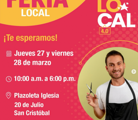 ¡San Cristóbal, nos vemos en la feria! Este 27, 28 y 29 de marzo ven a la Plazoleta del 20 de Julio y apoya el talento local en la feria comercial de Impulso Local 4.0 y Microempresa Local 5.0. Emprendimientos, cultura y sabor te esperan. ¡No faltes!
