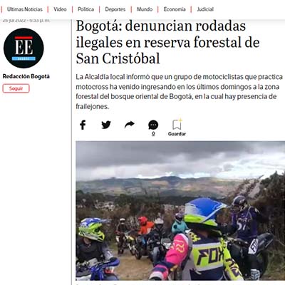De acuerdo con el Distrito, subir hasta la zona de Gaviotas (en San Cristóbal), la cual se encuentra en el interior de la reserva forestal protectora del bosque oriental de Bogotá, se convirtió en el plan de cada domingo para un grupo de motociclistas, “aficionados a la modalidad conocida como motocross”.