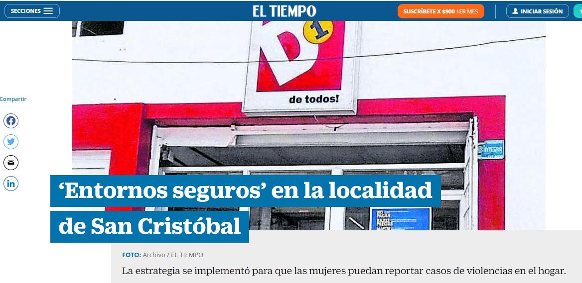 El alcalde de San Cristóbal, Anderson Acosta, aseguró que la estrategia ‘Espacios Seguros’ se implementó en la localidad para que las mujeres puedan reportar casos de violencias en el hogar y recibir atención en otros lugares comerciales como el D1, Justo y Bueno, ARA, Farmatodo, Tostao y Terpel.