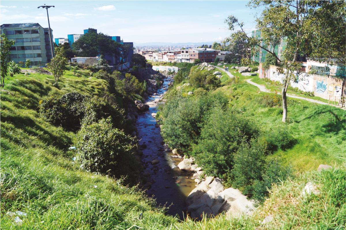 Su cuenca cuenta con un área de 12.991 hectaréas urbanas y 4.545 rurales correspondientes a los cerros Orientales de la ciudad. Nace en la reserva forestal El Delirio en el páramo de Cruz Verde. En su parte alta recibe las aguas de las quebradas San Cristóbal (de ahí que también sea conocido como río San Cristóbal), la Osa y Pablo Blanco. En su curso medio y bajo atraviesa la zona meridional de la peguelo. sabana de Bogotá.