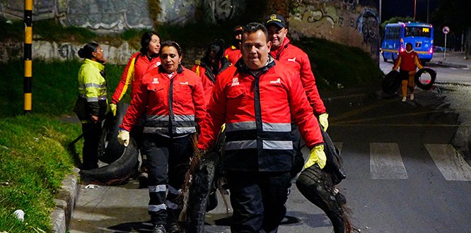 Cabe resaltar, que las llantas son llevadas a depósitos autorizados para poderlas triturar y luego reutilizarlas en espacios como césped artificial en parques del Distrito o la fabricación de otros elementos.