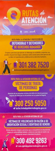 Durante la jornada, se socializaron los canales oficiales de denuncia y orientación, entre ellos las líneas 123 para emergencias, 122 de la Fiscalía General de la Nación, 141 del ICBF, la aplicación LibertApp, y la ruta de atención interna para víctimas a través del correo lucha.trata@gobiernobogota.gov.co y la línea 300 250 5050.“Desde la Alcaldía Local reafirmamos nuestro compromiso con la protección de los derechos humanos y la construcción de una localidad libre de cualquier forma de explotación”, señaló el alcalde local, quien destacó la importancia de la participación ciudadana y el trabajo articulado con las entidades que conforman el Comité Local de Derechos Humanos.